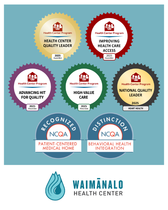 We are honored to share that Waimānalo Health Center has received the 2025 Gold Health Center Quality Leader Award, ranking in the top 10% of health centers nationally. The health center received recognition for: