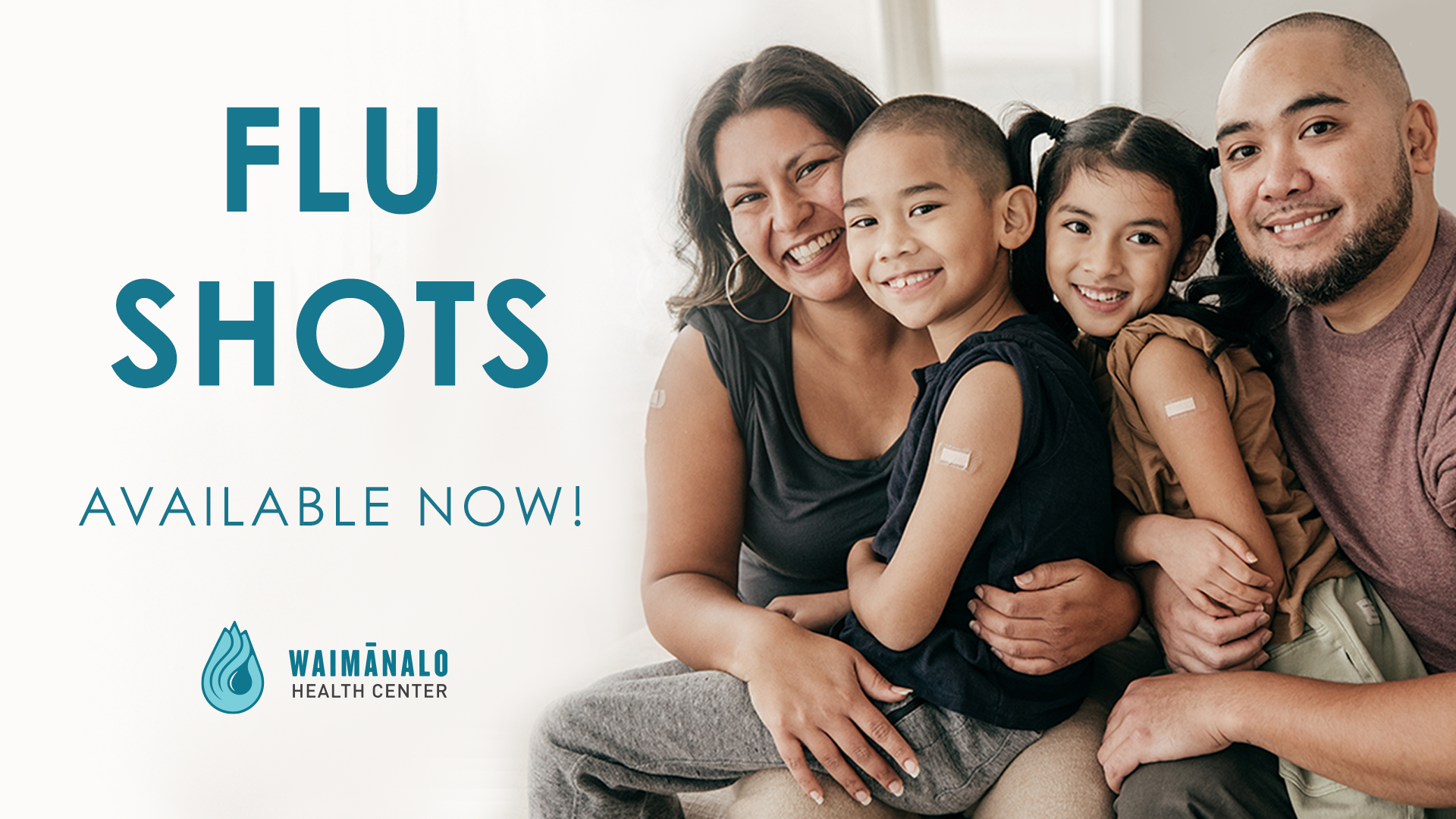 This flu season, you can protect yourself and your ‘ohana by getting a flu shot. Flu shots are available at Waimānalo Health Center at our Pharmacy and in our clinics. Please make an appointment by calling (808) 259-7948. Mahalo.